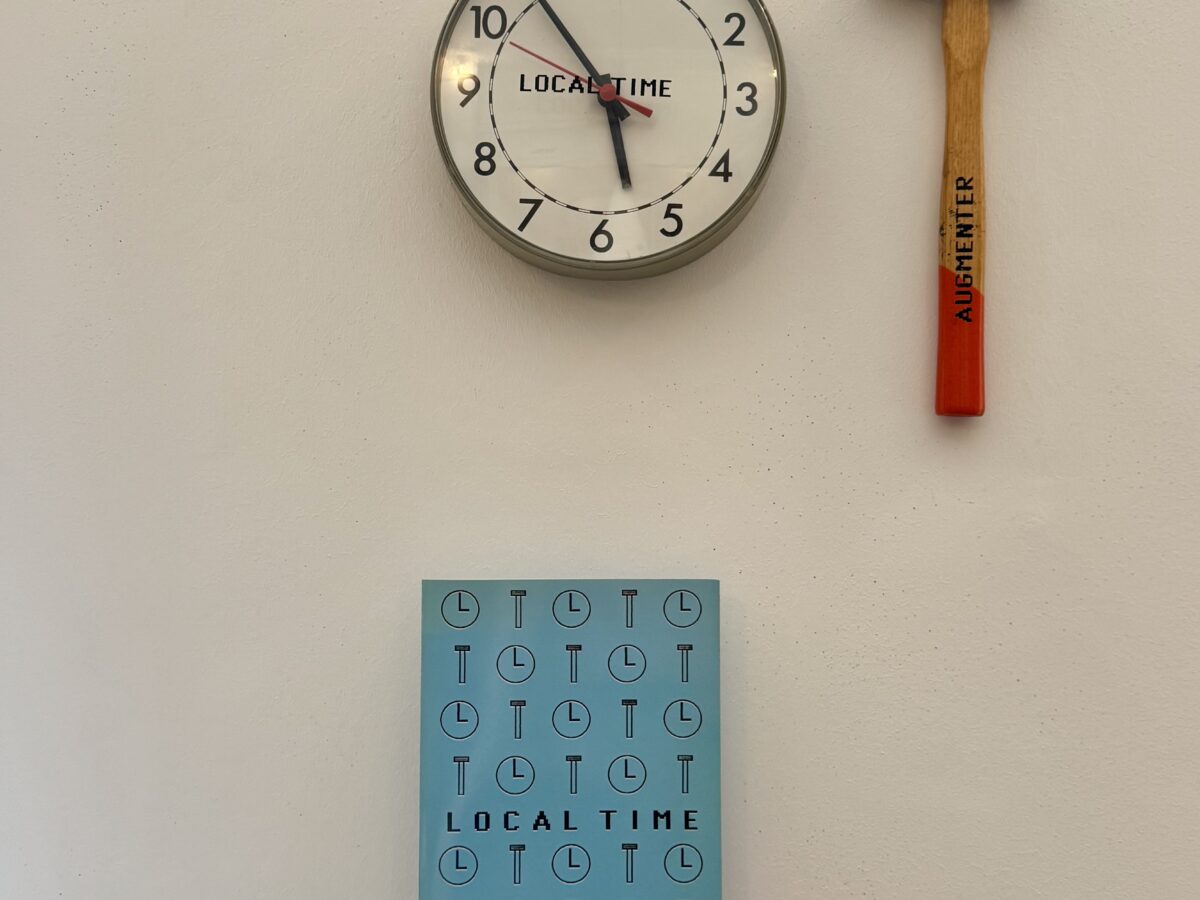 After more than 15 years, we decided to re-hang the clock and hammer by French artist Jean-Luc Vilmouth. It forms an important focal point in Copyright and, for Hilde and Johan in particular, serves as a reminder of Jan Hoet’s 1986 exhibition “Chambres d’amis.” Their then-apartment on the Coupure in Ghent was also part of the circuit, and Jean-Luc Vilmouth created an installation there in three interconnecting rooms.