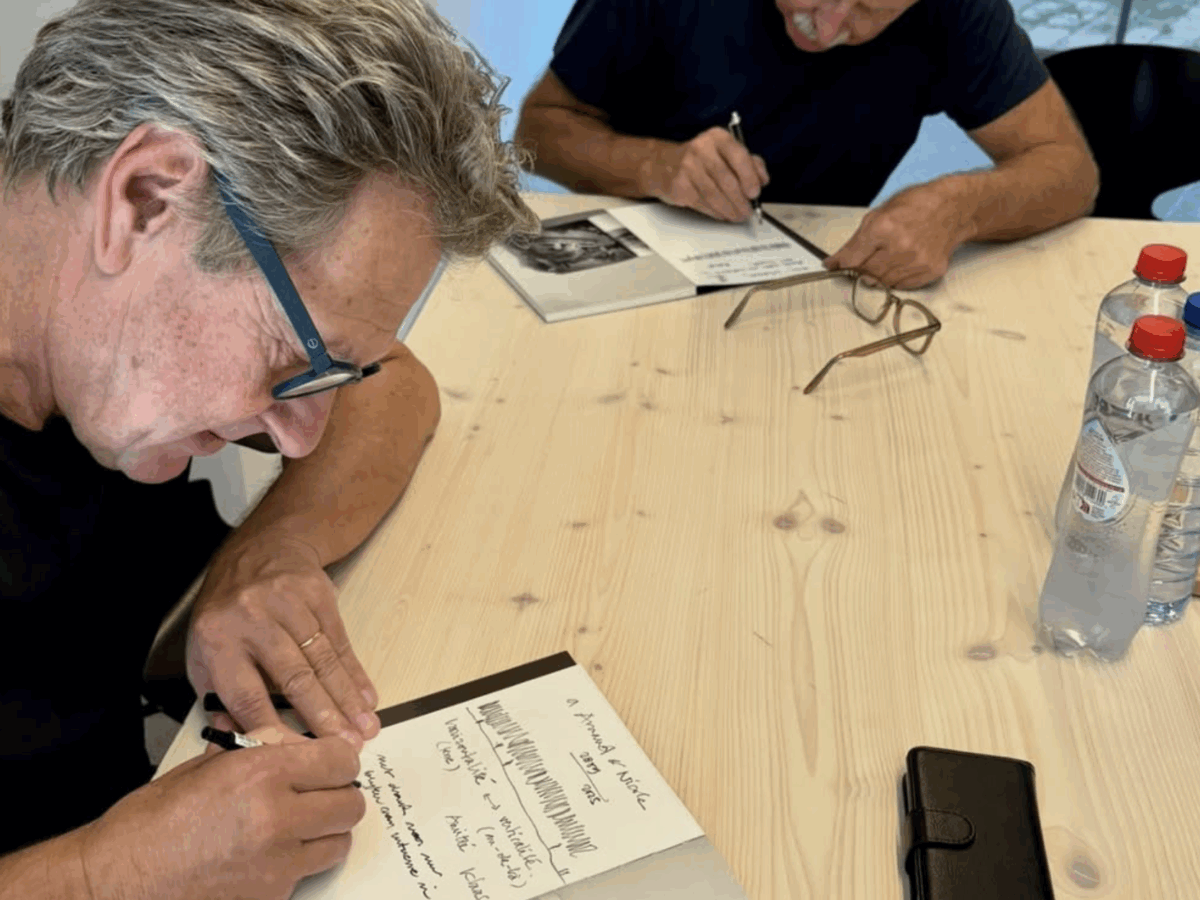 After a lecture in the Momu, Edouard Vermeulen came to sign his beautiful and extensive book in Copyright. He is known as the couturier of the Belgian and Dutch queens. In his refined and elegant designs you often recognize the hand of the architect and the artist. He studied interior architecture and his signature is one of the most beautiful we ever saw in the bookshop. The book was compiled by Veerle Windels and published by MER.B&L.