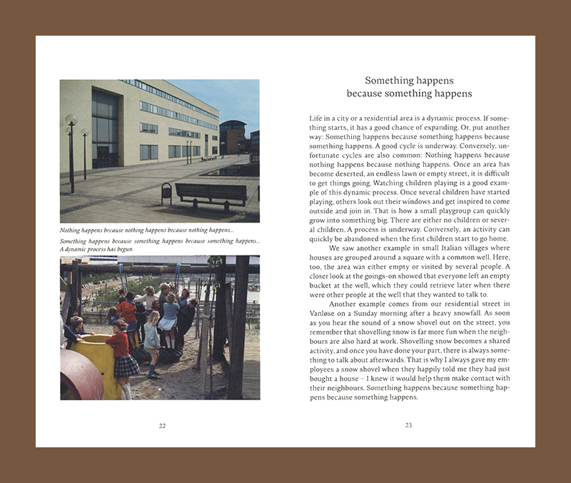 Good City – The Short Story is a collection of 24 short stories in which Gehl’s research work is translated into easy-to-understand reflections on city life. Like the staircase – an architecturally designed component, but one that quickly becomes an accumulation of newspapers and shopping bags. About the distinction between architecture and urban planning on the drawing board and the actual, lived city. About small spaces and big experiences.