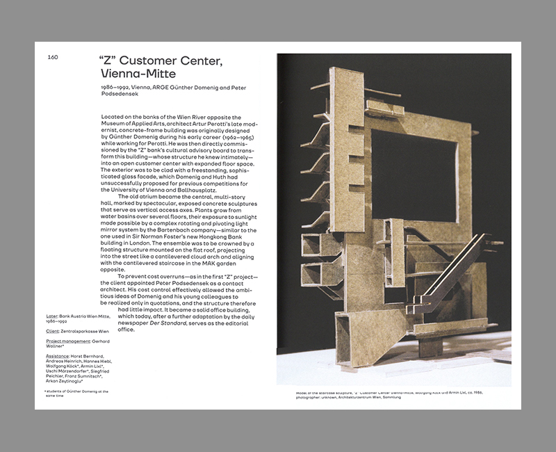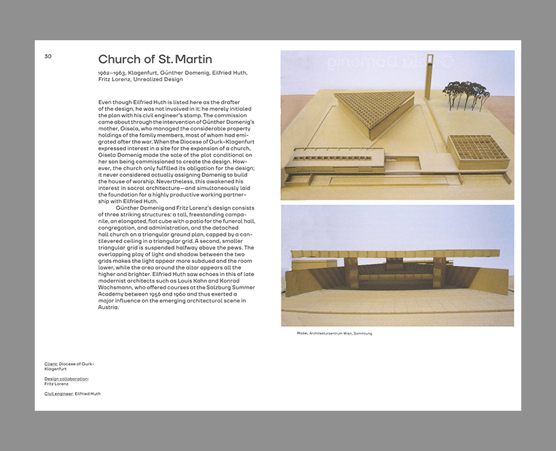 The book showcases “his” buildings and unrealized projects, supplemented by short biographies of the key participants, reflecting their respective roles in joint undertakings. Moreover, it explores Domenig’s two decades as a professor at Graz University of Technology’s Faculty of Architecture (1980–2000). Teaching boosted his own career and induced a back-and-forth flux of knowledge and people—students and employees of different generations—between his studio and the university.