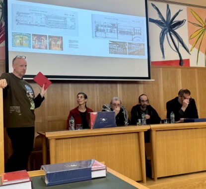 Presentatie van A Founder’s Choice, het omvangrijke overzichtwerk van Luc Deleu & T.O.P. Office, in het Centrum Charles Vandenhove, Gent. Inleiding door professor Steven Jacobs en een gesprek met Luc Deleu (T.O.P. office), architect Peter Swinnen (CRIT.), en met moderator Bruno Devos (Hopper&Fuchs, uitgever van de publicatie).