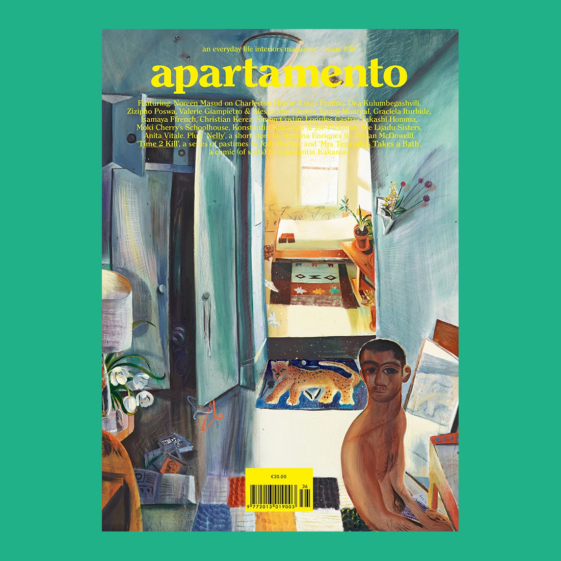 Apartamento magazine Issue 36 features Noreen Masud on Charleston House, Louis Fratino, Dea Kulumbegashvili, Zizipho Poswa, Valerie Giampietro & Alessandro Cicoria, Ignasi Monreal, Graciela Iturbide, the Lijadu Sisters, Takashi Homma, Simon Costin, Christian Kerez, Isamaya Ffrench, Moki Cherry’s Schoolhouse, Konstantin Kakanias & Joe Pickman, Anita Vitale, and Lourdes Castro. Plus: ‘Nelly’, a short story by Mariana Enriquez (tr. Megan McDowell), ‘Mrs Tependris Takes a Bath’, and ‘Time 2 Kill’, a series of pastimes by Jody Barton
