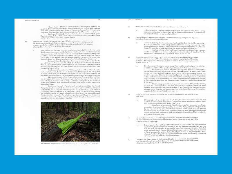 Art in Nature welcomes readers to explore this special place through lush visuals and fascinating texts. Vivid color photography captures the striking dialogue between Rowdy Meadow’s grounds, designed by innovative landscape architecture firm Reed Hildebrand, and the artwork, including site-specific commissions. More than forty specially commissioned interviews accompany the artists’ entries. These engaging texts provide new insight into the practices of some of the most exciting contemporary artists working today and contextualize their pieces at Rowdy Meadow.
