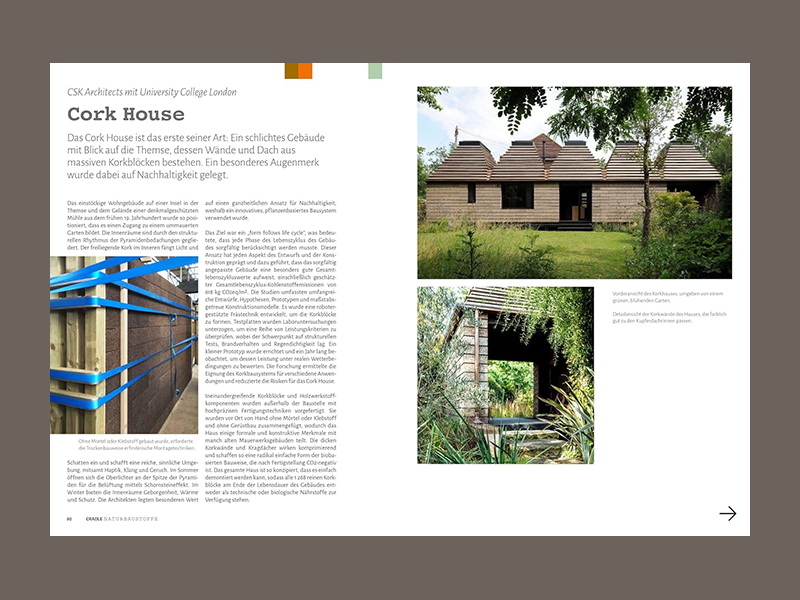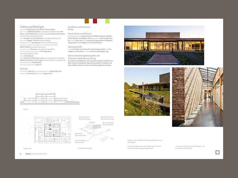 In construction, Natural Materials include biogenic materials, such as straw and wool, and mineral materials, such as clay. The former are renewable, while the latter are produced by slow geological processes and are abundant in nature. Common materials such as wood (a biogenic material) and natural stone (a mineral material) are also featured frequently in the volume but are not the main focus. Natural Building Materials are climate-friendly during extraction and are considered healthy for indoor environ ments as they are typically treated without harmful substances and can naturally regulate indoor climate. They are used for construction, insulation, and surfaces. This volume showcases around 50 buildings from German-speaking countries, Europe, and a few from Asia and the Americas. The regional and design differences are clear, from single-family homes to large office buildings. Introductory essays from a materials science perspective provide an overview.