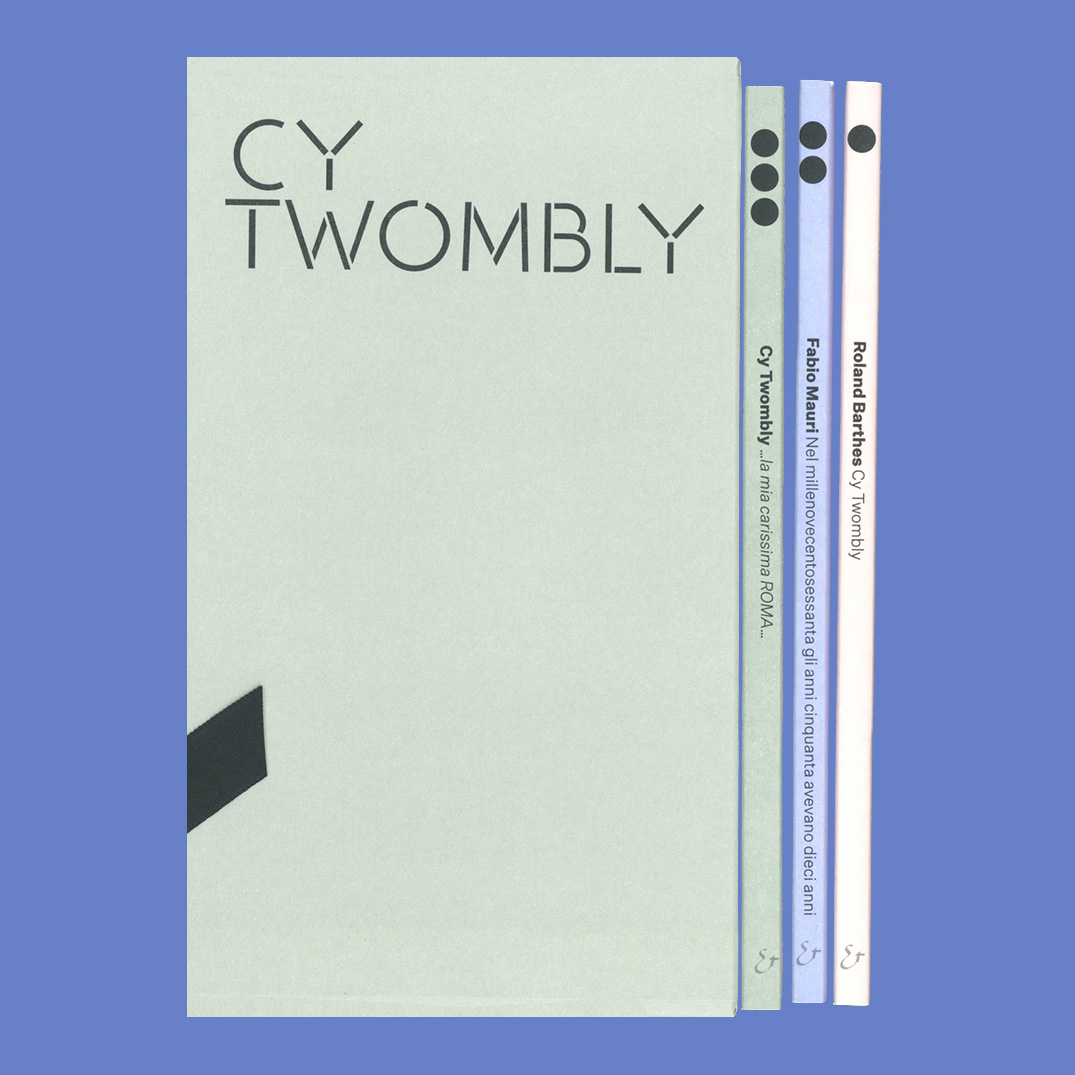 “Cy Twombly” is a three-volume editorial project brought together in a refined box set that recounts, through seminal and now unobtainable essays by Roland Barthes, a rare piece by Fabio Mauri on Rome in the 1960s, and other testimonies and photographs from the period, the profound bond between Cy Twombly and the city of Rome—the city that welcomed him, inspired him, and decisively influenced his poetics. The work represents a fascinating cultural, historical, and emotional portrait of the artist’s Roman period, building a unique mosaic in Twombly studies.