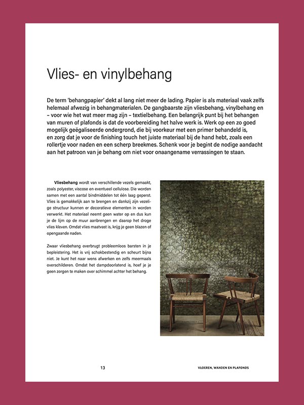 De achtste editie presenteert meer dan honderd materialen, van klassiekers tot verrassende nieuwkomers. De focus ligt altijd op praktische toepassingen, want in een interieur moet je kunnen leven. Elk materiaal wordt geïllustreerd met goedgekozen beelden, vooral van ontwerpen van Belgische architecten en interieurarchitecten. Zij tonen wat er mogelijk is en hoe het moet.