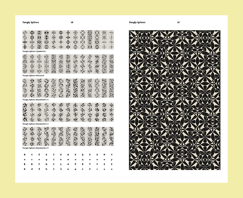 What also makes VanderLans and Licko the perfect design pair is that he is as adept at using typefaces as she is at making them. Most specimens in this book were designed by VanderLans. He showcases his partner’s fonts in a way that both demonstrates their utility and makes them objects of desire. His clear layouts—removed from the more radical compositions of Emigre magazine’s early years—are combined with lucid writing, always informative and often dryly funny. The specimens also vary in approach, with Crackly (2019) and Tally (2022) providing examples of how the couple worked their individual hobbies—pattern design and travel photography—into catalog concepts. While most type specimens present new releases, this compilation covers a period when Emigre issued many booklets revisiting their back catalog. It shows the versatility and perennial relevance of the type they chose to publish, both internally and from a long list of forward-thinking designers. Like any good specimen, it’s a snapshot of type and design history, and an invitation to reimagine what each typeface can do today.