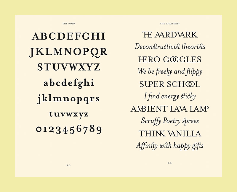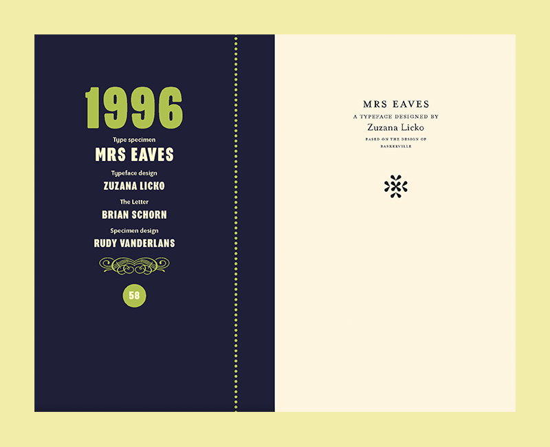 To announce each of its new typeface releases, Emigre published small booklets displaying the virtues of its fonts and revealing the processes used to design them. More than simple sales tools, these type specimens were enjoyed as much for their inventive contents and layouts as for their innovative typeface designs. In 2016, Emigre published the first 18 years of these type specimens in a single book, spanning 1986–2004.