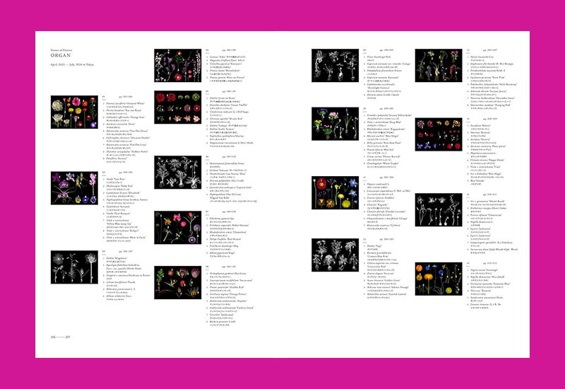 Following on the 2012 publication of the first volume of this sumptuous plant identification guide, Japanese flower artist Makoto Azuma and botanical photographer Shunsuke Shiinoki present over 130 photographs as part of four new series: Whole, Breath, Organ, and Incunabula. The first comprises photographs of flowers and plants from different places, arranged in a flat style. The second and third reveal the biological processes of flowers that are invisible to the naked eye. The last presents digital bouquets that only exist in a meta-space. A detailed list of plant names and a comprehensive index at the end of the book allow the reader to search for and learn more about each species.