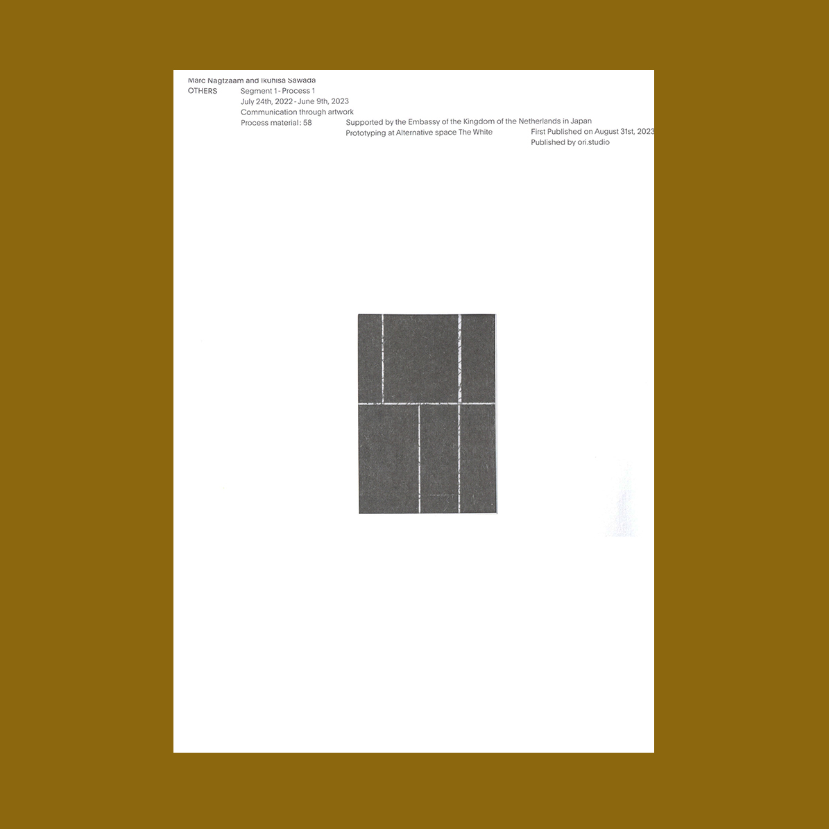 “OTHERS” is a collaborative project between Japanese photographer Ikuhisa Sawada and Dutch artist Marc Nagtzaam. Beginning at opposite ends of a long distance, the trajectories of the two artists resemble a series of paths traveling towards one another following parallel lines, passing as they reach out for ends that are simultaneously shared and separate. This artist’s book, the first of three for this project, documents the act of “communication through artwork” through a series of images and sketches generated in the lead up to their first exhibition in Tokyo, as they allowed their work to change and adapt as it entered into the gravitational influence of the “other”.