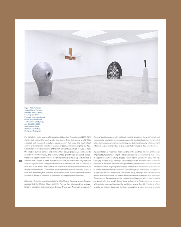 A comprehensive look at the career of an important American artist, highlighting the global histories, traditions and techniques of production that shaped his work. Over the last five decades, Martin Puryear (b. 1941) has pioneered an influential sculptural language that integrates wide-ranging aesthetic traditions and techniques of production with roots around the world. Through his innovative use of form, materials, and process, Puryear’s work exemplifies the expressive potential for abstraction in our time. This book highlights the global histories that have shaped Puryear’s practice, offering a fresh and timely perspective on his art. It emphasizes the unique ways that the artist combines the diverse histories of making that he has encountered throughout his travels, observations, research, and study.