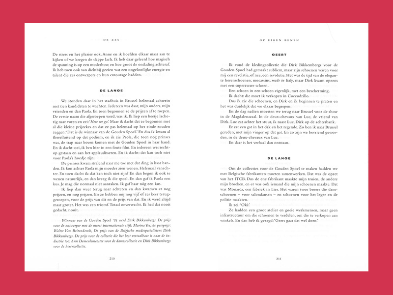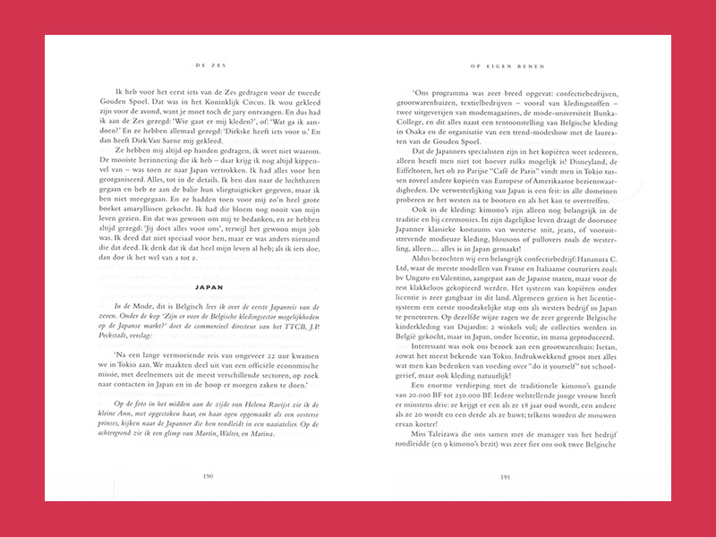 De echo van deze woorden heeft de ontwerpers nooit meer losgelaten. Integendeel, in de loop van de jaren klonk die steeds luider en kregen de Zes een mythische status. Met hun wereldwijde succes zetten Dries Van Noten, Ann Demeulemeester, Dirk Bikkembergs, Walter Van Beirendonck, Dirk Van Saene en Marina Yee de Belgische mode op de internationale kaart.