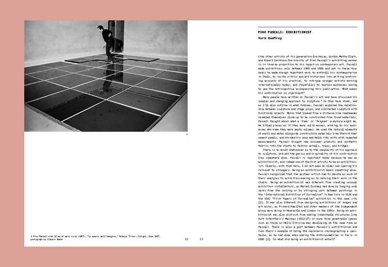 Arte Povera artist Pino Pascali (1935–68) created “fake sculptures” that played with perceptions of reality. This two-volume exhibition catalog-cum-reader juxtaposes 49 of his works with nine pieces by other postwar artists, and includes both an exhibition chronology and an anthology of texts on the artist.