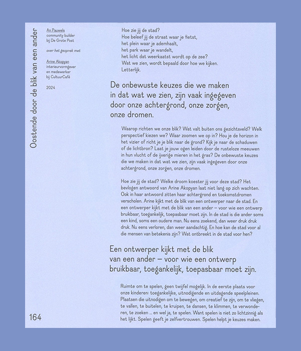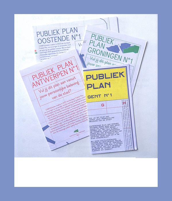 This book offers insight into the process of Publiek Plan, a project that took place between 2022 and 2025 in Ghent, Antwerp, Groningen and Ostend.