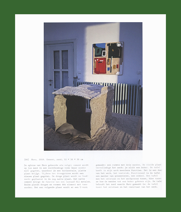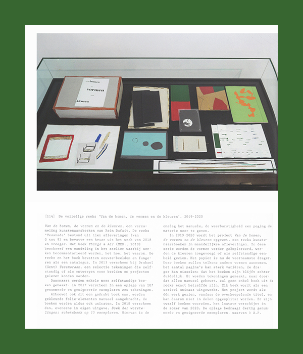 Al bijna twee decennia maakt Belgisch kunstenaar Rein Dufait (° 1990) materiële objecten die in de wereld bestaan als kunstwerken of kunstenaarspublicaties, na een proces (soms lang, soms kort) dat bestaat uit combinaties van onder andere boetseren, vullen, stapelen, bouwen, knippen, scheuren, vastknopen, schilderen, frotteren, pletten, lassen, beschilderen, snijden, kleven, lijmen, componeren, schetsen, kleuren en graven. De materialen die hij gebruikt zijn onder meer karton, zand, hout, plastic, plexiglas, acrylhars, papier, verf en oliepastel.