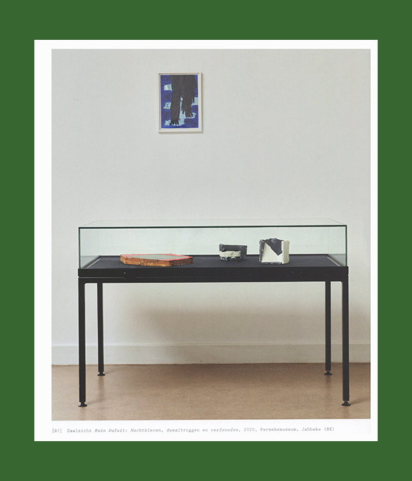 In de verte – de lucht toont werken gemaakt tussen 2018 en 2025 en kan als een vervolg beschouwd worden op Things & Air uit 2018. Via verschillende invalshoeken (reproducties, tentoonstellingszichten en kunstenaarspublicaties) wordt het oeuvre van Rein Dufait in beeld gebracht.