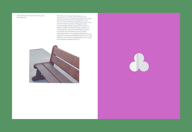 ‘Two Revolutions a Day’ is the first comprehensive survey of Sophie Nys’ ceaselessly inventive and researched artistic practice, covering works and exhibitions from the early 2000s to the present. Structured around a wide-ranging conversation between Nys and critic Christophe Van Gerrewey, the book reveals the artist’s overlapping fascinations with history and power, psychology and relationships, design and book making, and – not least – language and its semantic slippages.