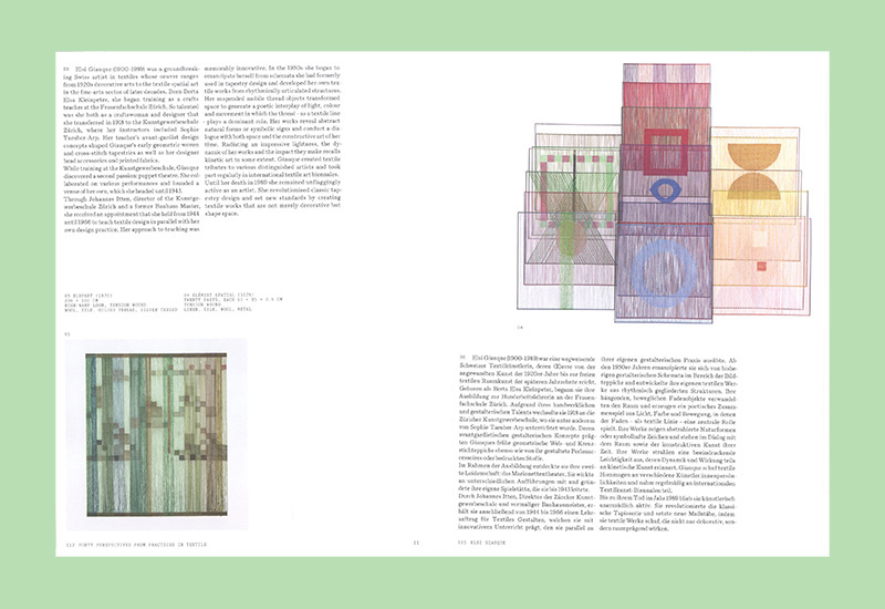 Textiles are an integral part of our daily lives, and designing them is still a typically female métier. In this illustrated publication, Stephanie Kahnau presents 40 female textile designers of the 20th and 21st centuries and their outstanding and individual approaches to their medium. The stances presented grant access to the concept, technique, and function of textiles from different positions. For textile practices can take many forms: from a single “line”—the thread—structures ranging from flat to expansive emerge. Not only do they embrace our bodies, protect and clothe them; our bodies also embrace them: we become absorbed in their structured spaces and immerse ourselves in their visual appearance. This publication presents multiple perspectives on this fascinating medium at the interface between functionality and aesthetics. Four different stickers on the cover, sent at random