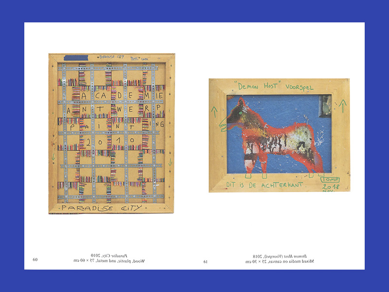 Alongside front and back views of a broad selection of works, the book includes drawings and poems by Tom Poelmans, as well as texts by people close to him.